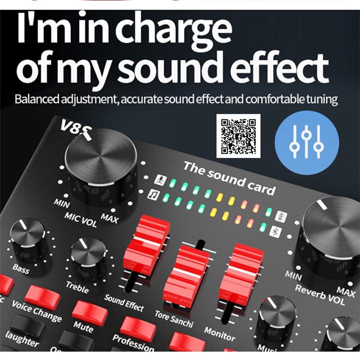 Designed for seamless integration, the V8 streaming sound card connects via USB to your PC or smartphone and includes headphone monitoring and volume controls so you hear exactly what the audience hears. A dedicated voice changer lets you adjust pitch in real‑time, making this the top search choice for those seeking a V8 voice changer Oman experience. Independent dials for mic volume, reverb, bass/treble, and background music allow complete control over your audio mix.