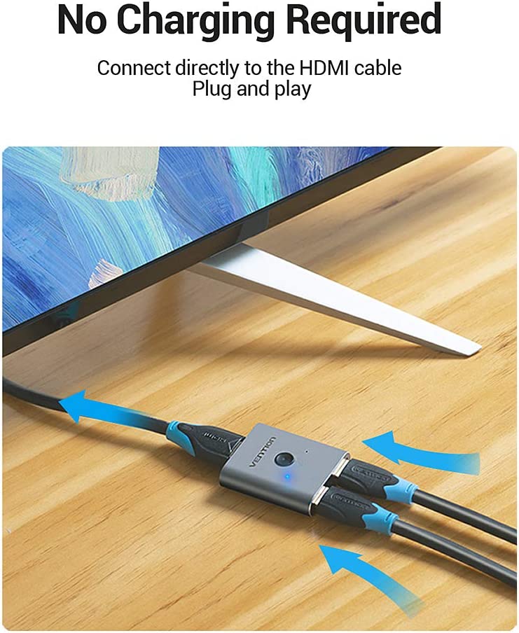Vention HDMI Bi-Direction Switcher Splitter – 2-Port 4K@60Hz HDMI 2.0 Switch – Supports 3D, HDR, Dolby Audio – Plug & Play
