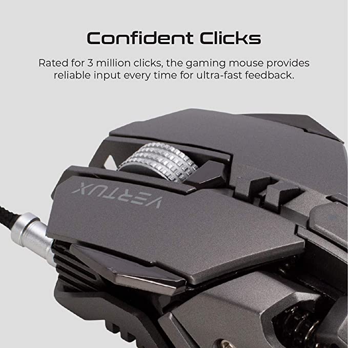 Equipped with six programmable buttons, the Vertux Drago offers customizable controls to suit your gaming style. The anti-slip rubber scroll wheel provides precise scrolling, while the braided cable enhances durability.