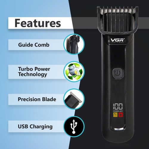 Discover the power and precision of the VGR Trimmer V929, designed for men seeking a professional grooming experience. This rechargeable beard and hair trimmer features ultra-sharp stainless steel blades that ensure clean, smooth cuts with every use.