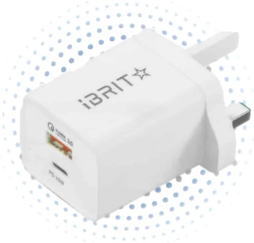 IBRIT 3-Pin Fast USB Wall Charger – UK Plug, Rapid Charging Adapter for Smartphones & Tablets,