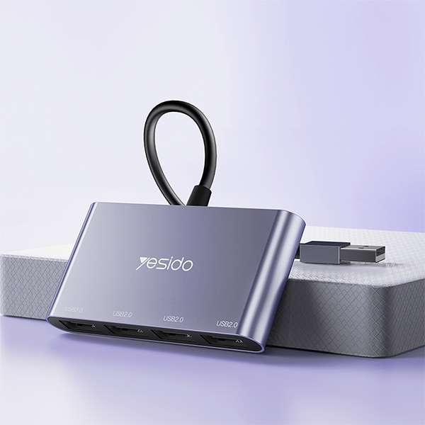 YESIDO HB12 4‑Port USB 2.0 Hub Adapter – Compact Aluminium Multi‑Port Splitter –
