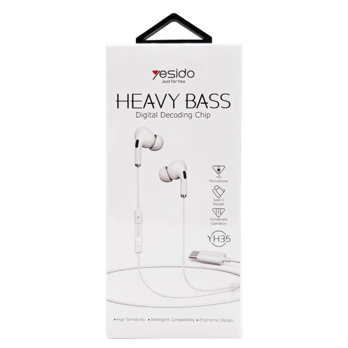 Yesido Heavy Bass Type-C Earphone YH38 – Deep Bass Wired Earbuds with Mic & 3‑Button Control –