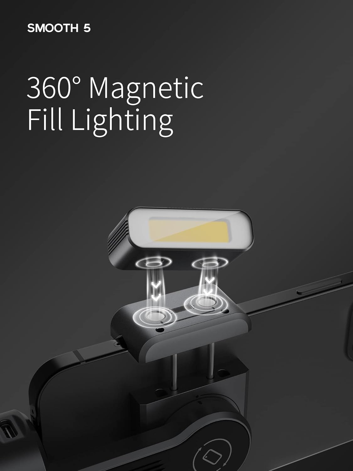Zhiyun Smooth 5 3-Axis Smartphone Gimbal – Professional Stabilizer with Magnetic Fill Light, 12-Hour Battery Life, Compatible with iOS & Android,