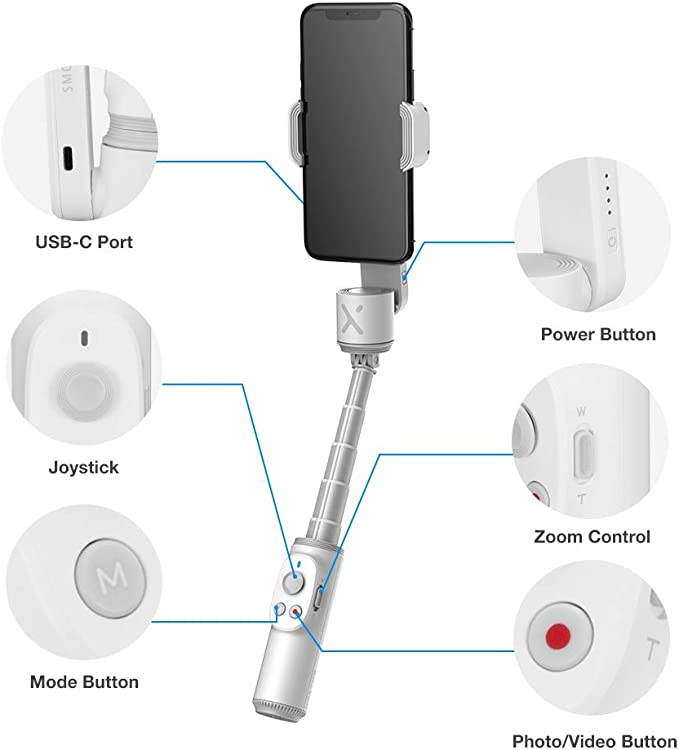 Zhiyun Smooth X – Foldable 2-Axis Smartphone Gimbal with Extendable Selfie Stick and Gesture Control –